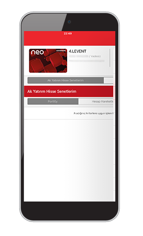 Akbank Mobil uygulaması ile hisse senedi ve VIOP işlemlerinizi dilediğiniz yerden, istediğiniz zaman gerçekleştirebilirsiniz. Üstelik Akbank Mobil ile Ak Yatırım ve Akbank Ekonomik Araştırmalar tarafından hazırlanan piyasa rapor ve analizleri de anında cebinizde!