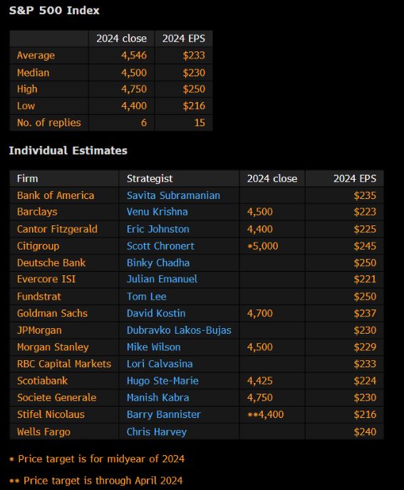 • 2024 beklentilerine dair kurumların Bloomberg’e girdiği en güncel tahminler aşağıda. Benim beklentim Q1’24 başlarında yeni bir rekor göreceğimiz yönünde.