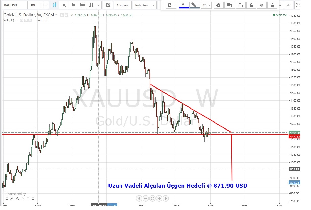 Teknik olarak baktığımızda uzun vadeli grafiklerde 1180 seviyesi önemli bir destek ve kalıcı olarak kırılması durumunda orta uzun vadeli teknik hedefi 870 USD seviyeleri