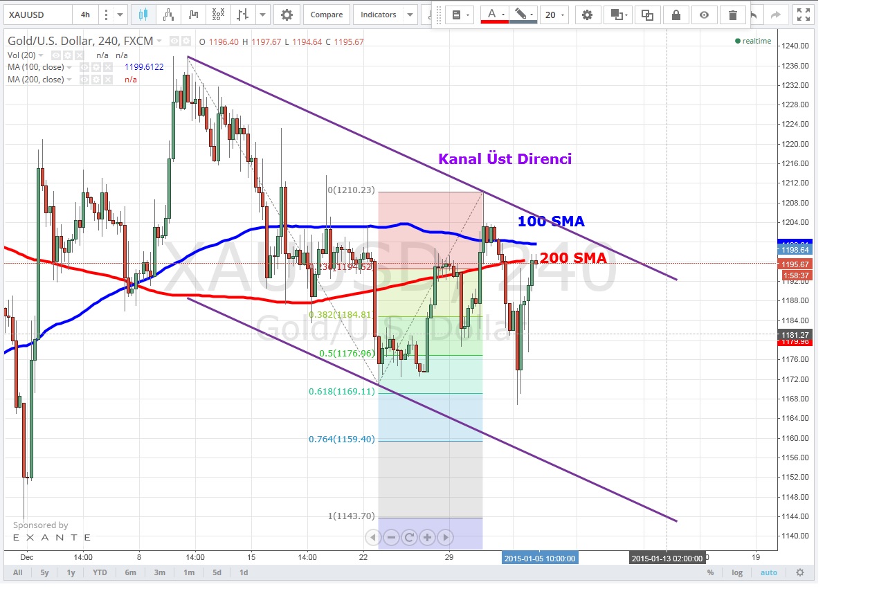 Orta Uzun vedeli kritik destek seviyesi olan ve daha önce birkaç kez denediği 1180 USD seviyesini kırmayı test eden sarı metal Xmas süresince bu destek etrafında düşen hacim ile birlikte teknikçilerin testere hareketi diye tabir ettiği sert hareketler yaptı .