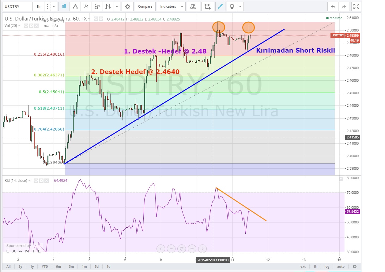 Hızlı bir yükseliş ile 2.50+ seviyeleri üzerinde kadar çıkan parite kısa vadede halen yükseliş trendinde ve KISA pozisyon açmak için henüz erken olabilir