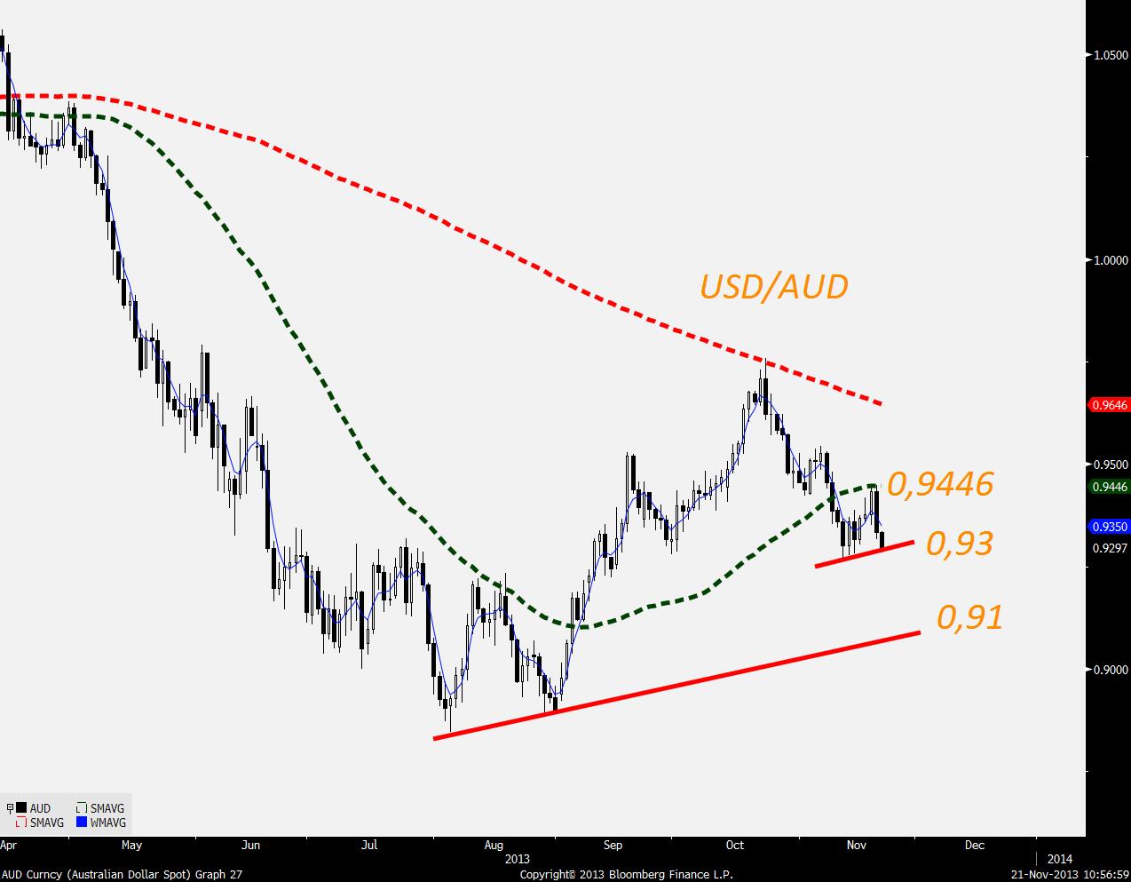 Ozi olarak bilinen Avustralya Doları daha önceleri 200 günlük ortalamasını aşmaya çalışmış ve bizce de önemli bri direnci aşması zor görülenler arasında sayılmıştı. Ardından 0,9446'daki 50 günlük ortalama da geçilememişti. Bu kez de merkez bankasından gelen 'pahalıyız' açıklamaları bir tur baskı daha yaratıyor. 0,93'ün kırılması sonrasında 0,91 denemesi görmek şaşırtıcı olmayacaktır. 0,9350 geçilirse uzun pozisyon açmak isteyenler içinse 0,9446'daki 50 günlük ortalama hala direnç olmaya devam ediyor.