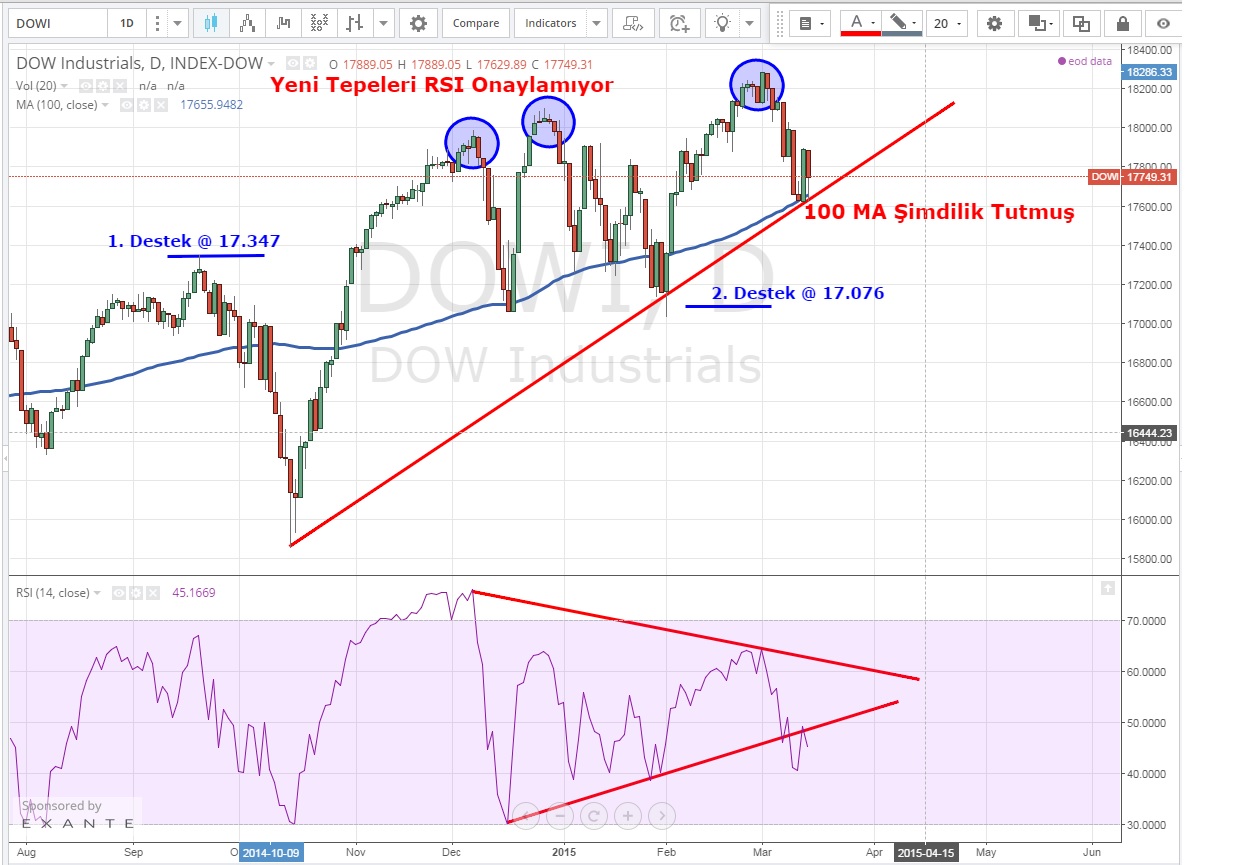Parite ve emtiaların tekniğine baktığımda birçoğunda kararsızlık görüyorum ve net bir sinyalden bahsetmem pek mümkün değil ,endekslerden DOW dikkatimi çekti