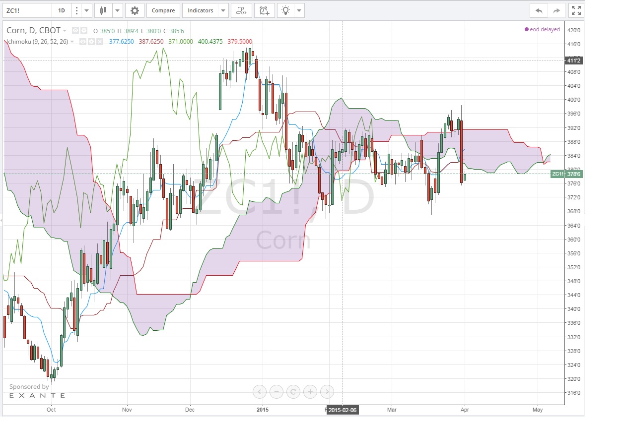 Mısır vadelilerine günlük baktığımızda fiyatlarin dün sert satış ile birlikte günlük olarak Ichi -Moku bulutu altina indiğini görüyoruz .Bu fiyatların düşüş eğiliminde olduğu ve trendin bearish piyasaya geçişinin ilk sinyali olarak algılanabilir