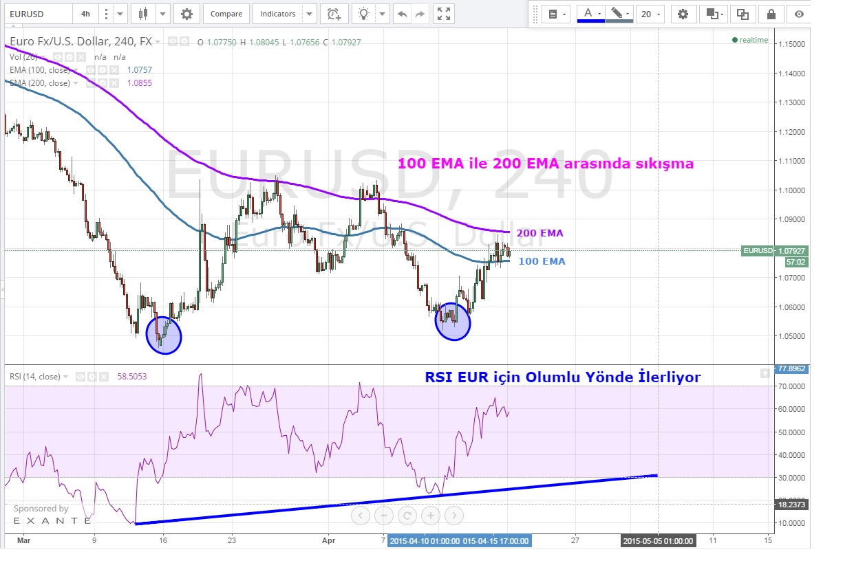 Paritenin 100 EMA ile 200 EMA arasında sıkıştığını