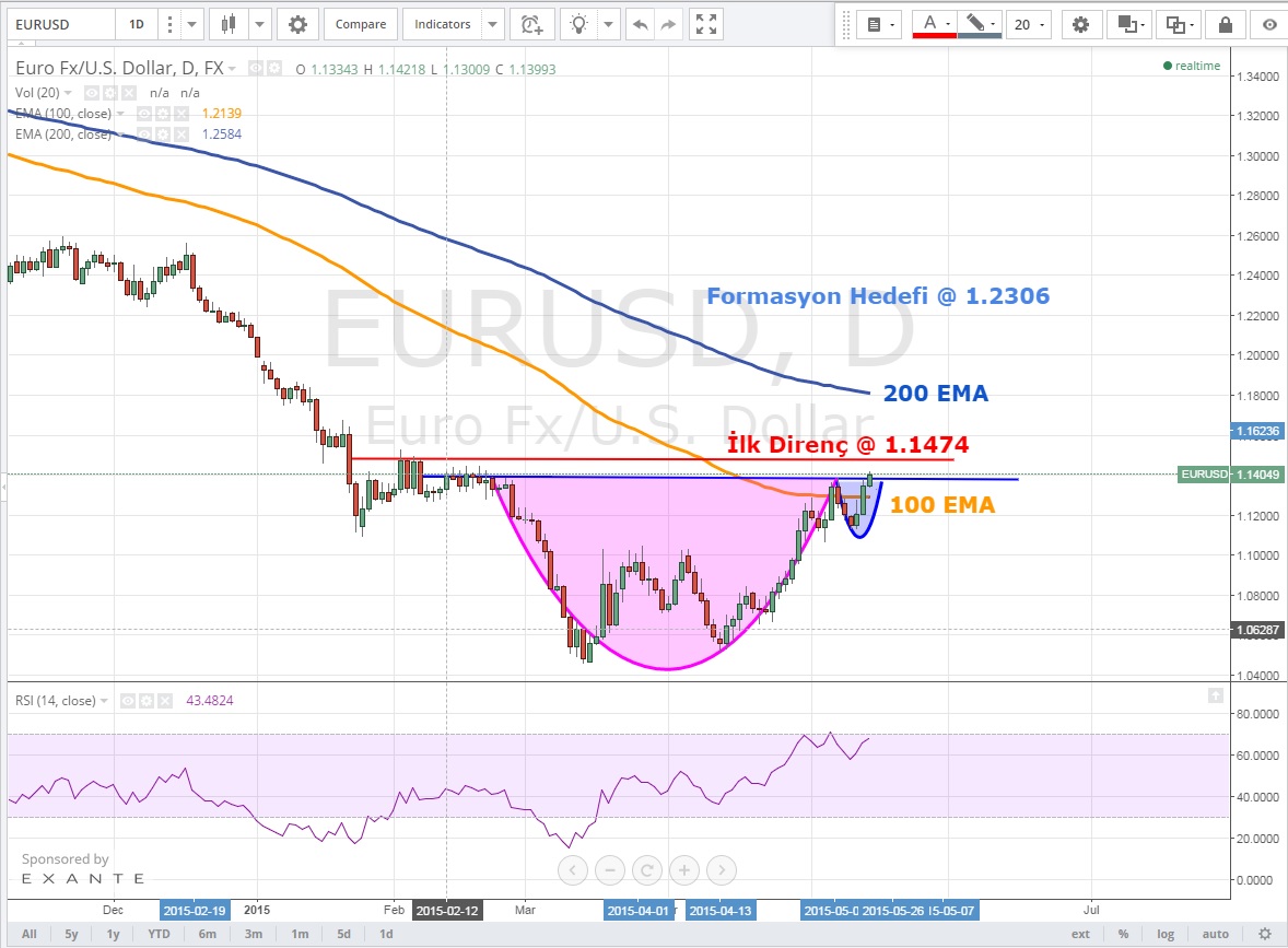 Günlük grafiklerde Fincan -Kulp oluşumu var .1.1392 üzerinde kapanışlar formasyonu teyid edecek