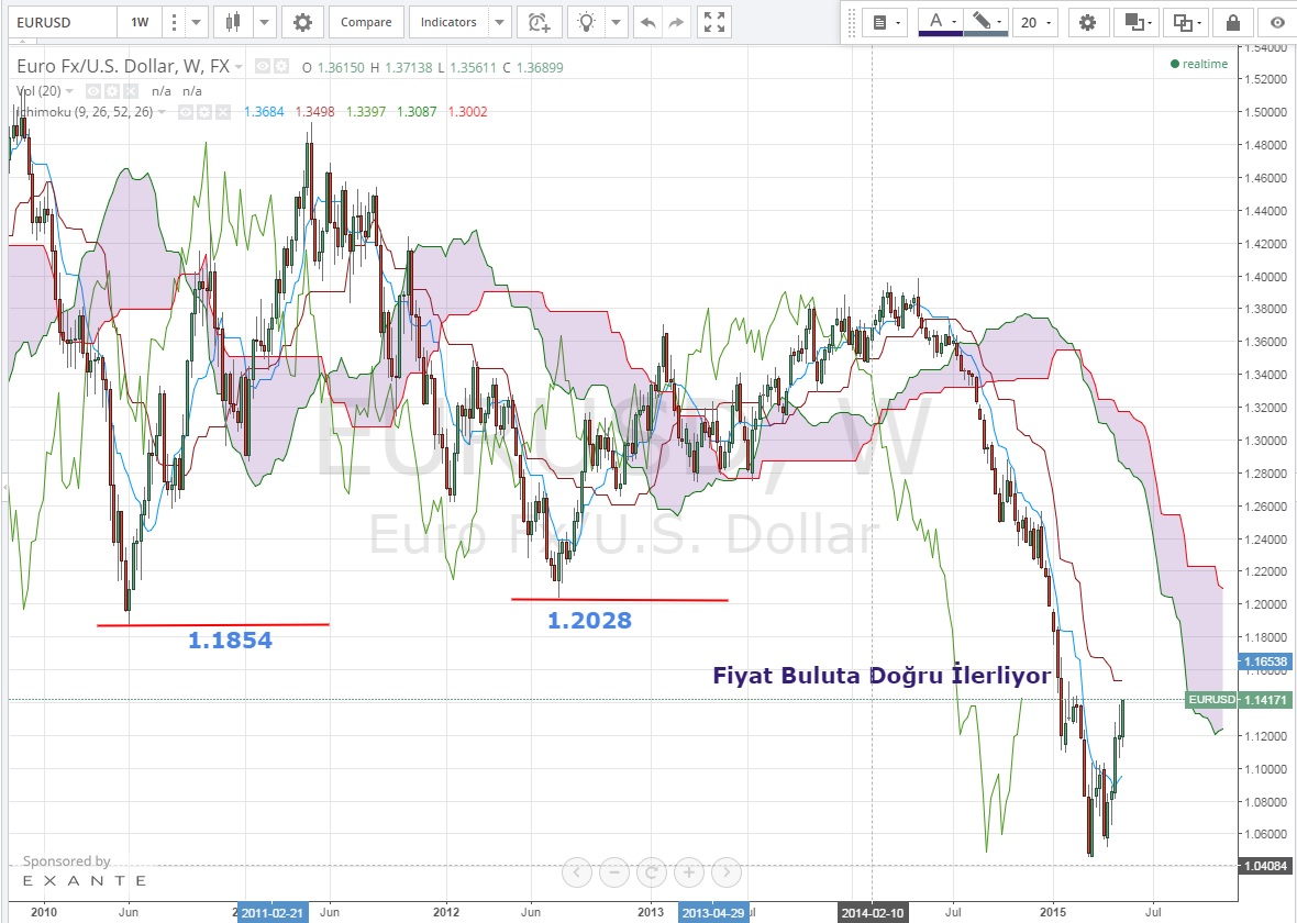 Haftalık grafiklere baktığımızda ise Ichi -Moku bulutu altında olan paritede trend değişiminden söz etmek mümkün değil. Hareketi düzeltme olarak değerlendirmek daha doğru