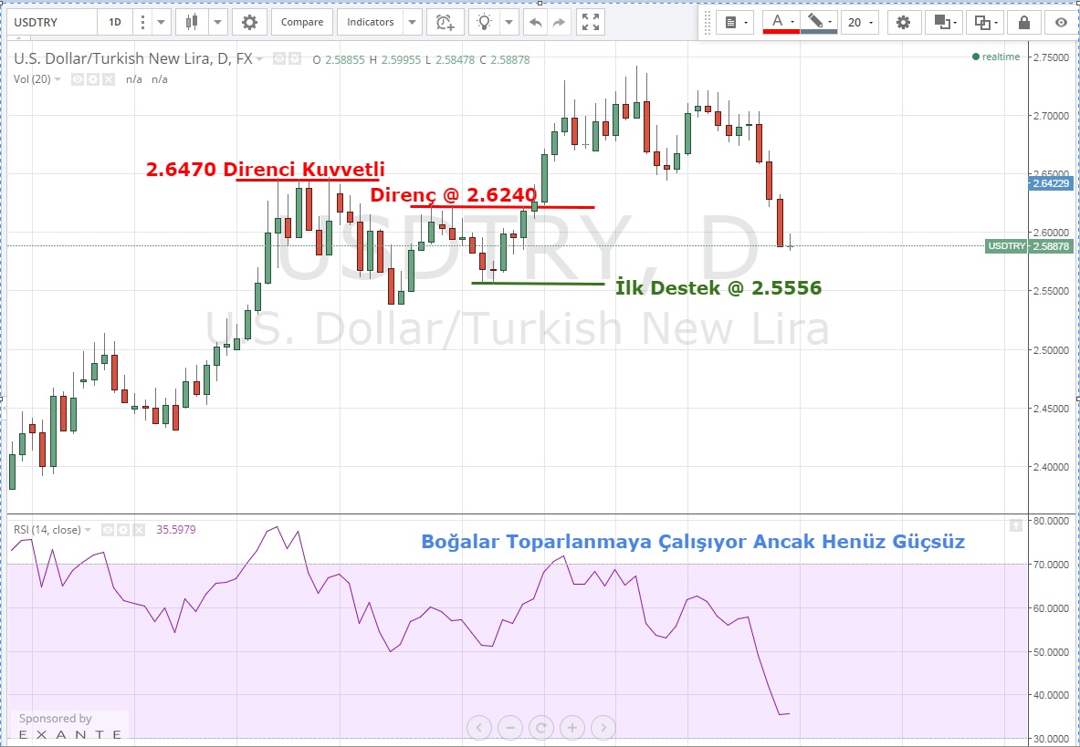 Gelen telefon ve e-mailler 2.74+ 'dan gerileyen USDTRY 'de longcuların iştahının kabardığı izlenimini verse de teknik olarak net bir dönüş sinyali gelmeden long pozisyon almak için hala erken