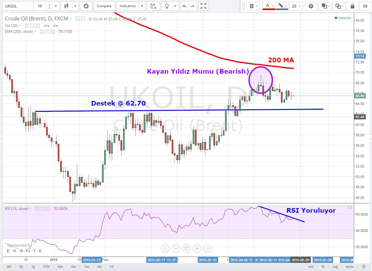 Günlük grafiklere bakınca 200 MA altında ters çekiç (shooting star ) oluşturan siyah altın ilk desteğini $62.70 seviyesinde arayacak