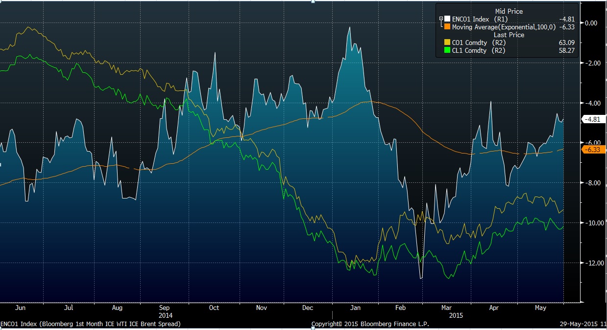 "Araç kullanımının arttığı yaz mevsiminin yaklaşmasıyla ABD’deki rafinerilerin daha fazla ham petrol işlediğini geçen haftaki stok verilerinden gördük. ABD rafinerilerinin kapasite kullanımlarındaki artış bu şekilde devam ederse, ki mevsimsel olarak bu güçlü bir ihtimal, ABD ham petrol stoklarındaki fazlalığın WTI fiyatları üzerindeki baskısı hafifleyebilir; böylece de Brent ile WTI arasındaki fiyat farkı daralabilir."