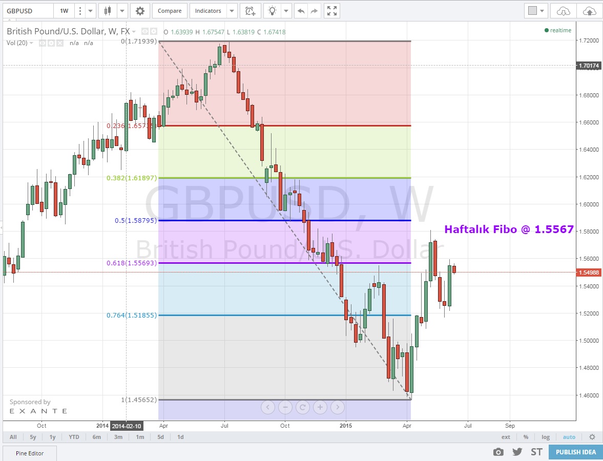 Teknik olarak baktığımızda Haftalık grafiklerde 1.5567 Fibo direncine takılan