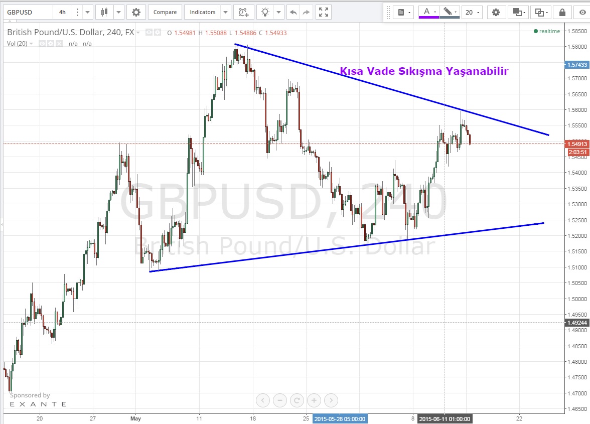 Daha kısa vadeye indiğimizde ise sıkışma yaşanan paritede sıkışmanın tamamlandığı yön doğrultusunda kısa vadeli pozisyon alınabilir