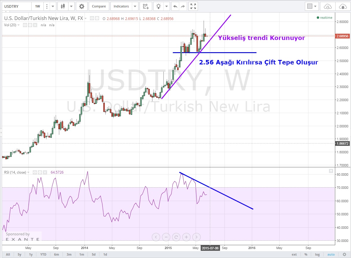 Uzun vadede yükseliş trend hala korunuyor ve görünüm USD+ .2.56 desteği aşağı kırılmadığı sürece orta-uzun vadede bir görünüm değişikliğinden bahsedemeyiz.