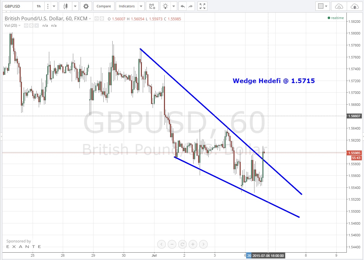 Kısa vadede ise düşen kamayı kıran paritede kama hedefi 1.5715 seviyesi