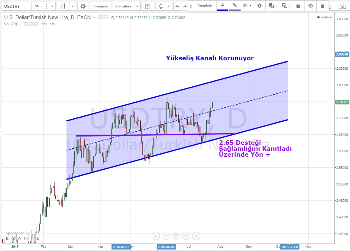 2.65 direnci geçilmesi ile birlikte yükseliş potansiyeline dikkat çektiğimiz USDTRY 'de https://www.tradeall.com/teknik-analiz-detay/2124/usdtry--nereden-alinmali- hedef seviyesi olan 2.72+ görüldü. Paritenin burada güç kesmeyerek 2.7534 yükseği yaptığını gördük. Aynı zamanda yükseliş kanalı oluşturan paritede kanal kırılmadığı sürece görünüm USD+ kalmaya devam edecektir.
