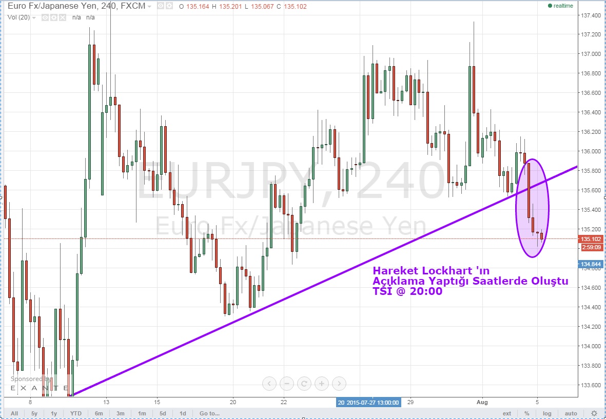 Hareketin TSİ 20:00 'de gerçekleşmesi, FED başkanlarından Lockhart 'ın açıklamaları ile aynı saate denk geldi. Lockhart 'ın açıklamalarına ilişkin detayları Gökhan Şen şurada yorumluyor https://www.tradeall.com/temel-analiz-detay/2166/lockhart-aciklamalari-rehaveti-bitirdi