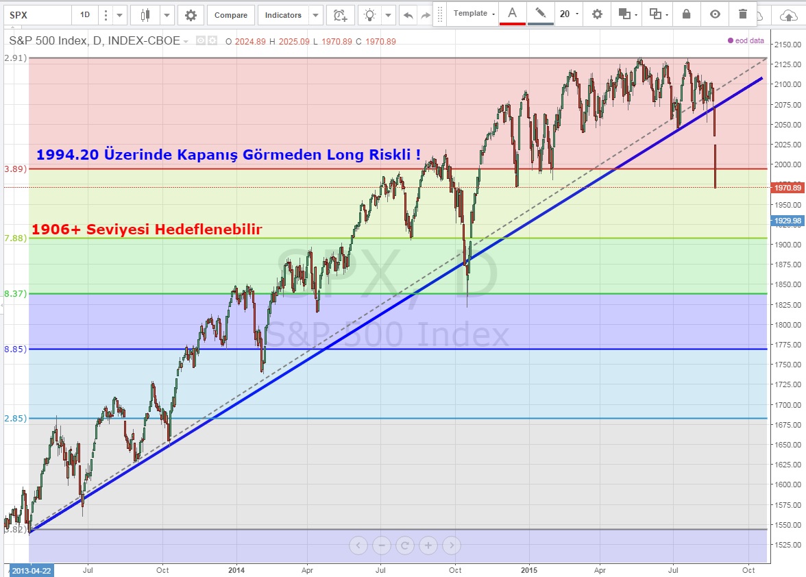 Kısaca şöyle özetlemek mümkün, 1994.20 üzeri kapanış yapmadığı sürece %4 günlük düşen bıçağı tutmaya çalışmak gereğinden fazla riskli olabilir.