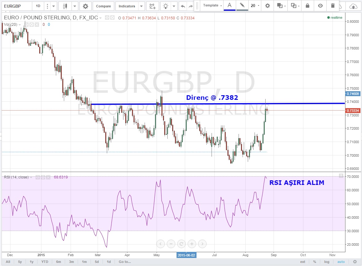 Geçtiğimiz haftadan başlayan EURO 'nun tüm pariteler karşısında yükselişi ile birlikte 0.7423 yükseğini yapan Chunnel, 200 EMA ortalamasını test etse de kapanışı kuvvetli direnç seviyesi 0.7389 altında yaptı.