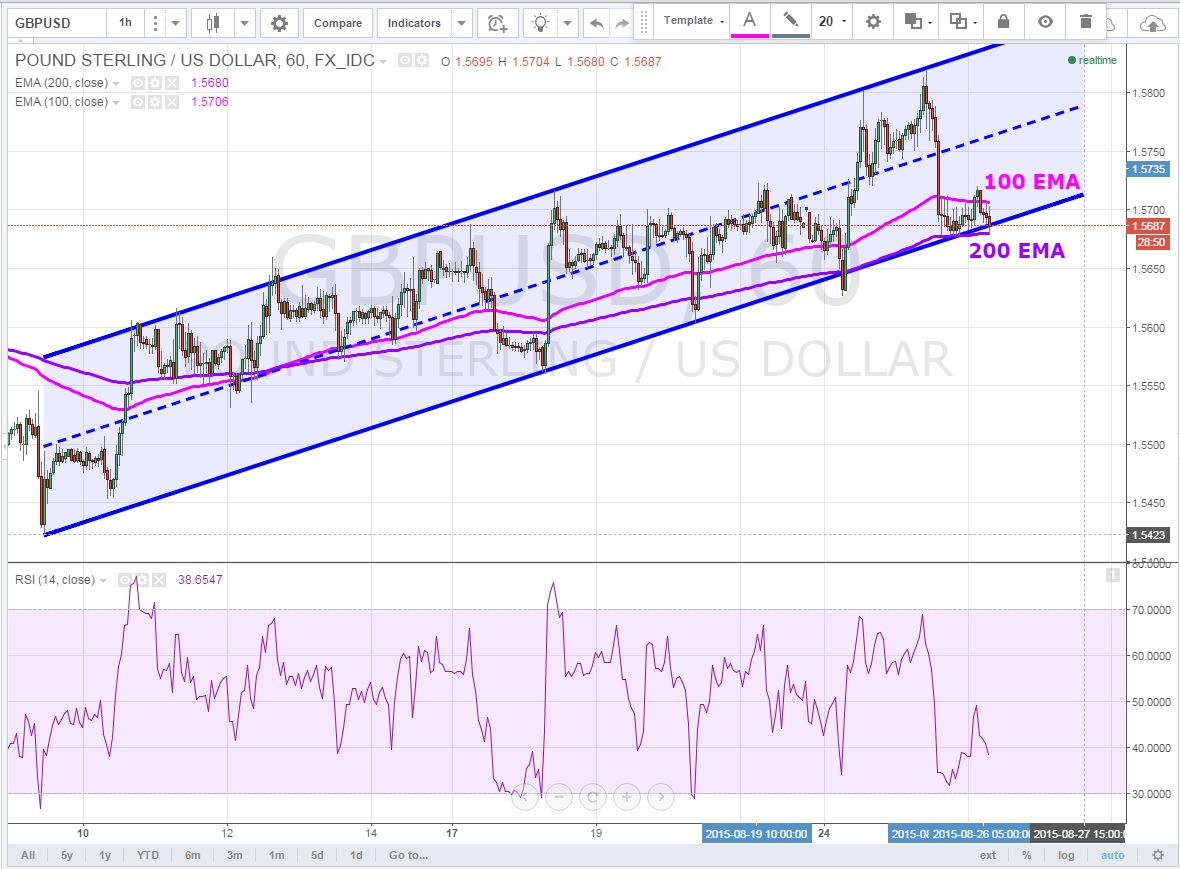 Kısa vadeye indiğimizde saatlik grafiklerde yükseliş kanalının dibini test eden Cable, burada aynı zamanda 200 EMA 'yı da ek destek olarak kullanmaya çalışıyor