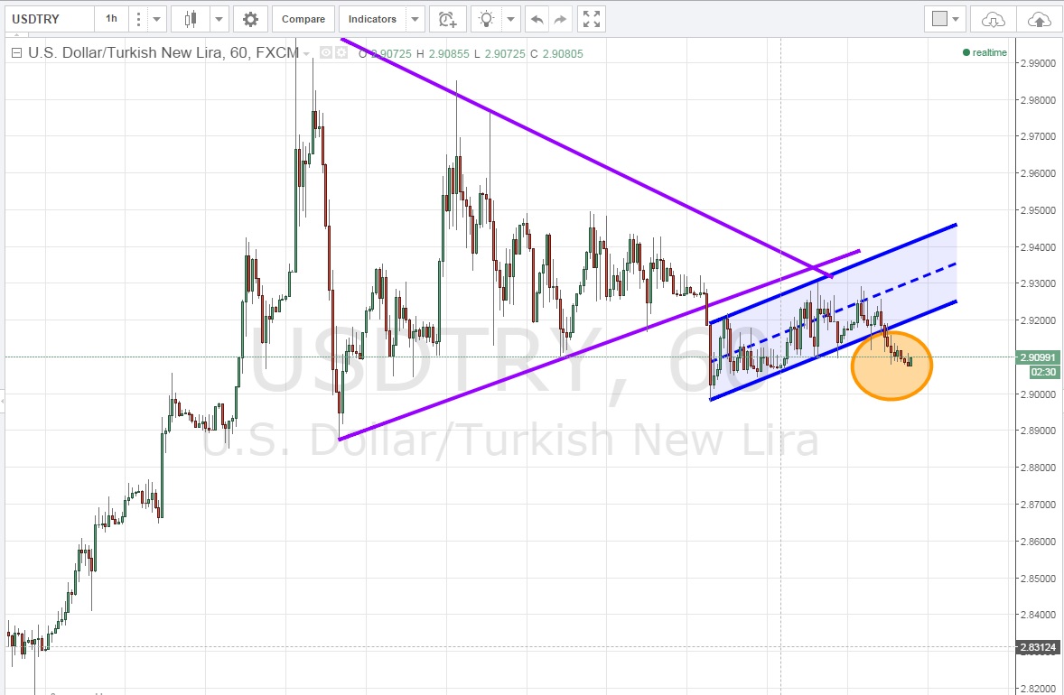 USDTRY 'de zorunlu karşılıkların arttırılması sonrası konuştuğumuz kısa vadeli yükseliş kanalının kırılması ile https://www.tradeall.com/teknik-analiz-detay/2222/usdtry--tcmb-mudahalesinin-olasi-teknik-yansimasi paritede güniçi en düşük seviye 2.9082 olarak belirlendi.