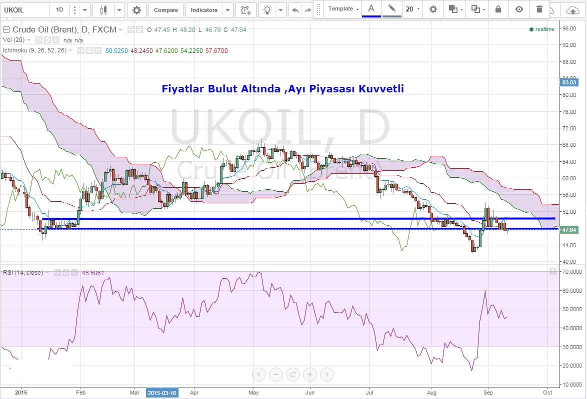 Günlük olarak Ichi Moku Bulutu altında seyreden fiyatların, ayı piyasasında olduğunu görüyoruz. Bu durumu makro olarak global düşük talep ve yüksek arz da desteklemekte.
