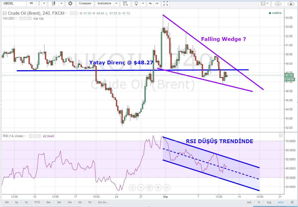 Yatay direncin @ $48.27 'de oluştuğu, aynı zamanda düşüş trendinin de bu seviyelerden geçtiği dikkat çekiyor