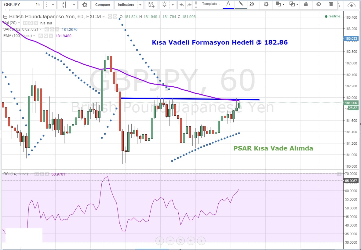 Kısa vadeye indiğimizde ise 182.02 seviyesi üzerinde hem dip oluşumu tamamlanabilir hem de 100 EMA direnci aşılabilir