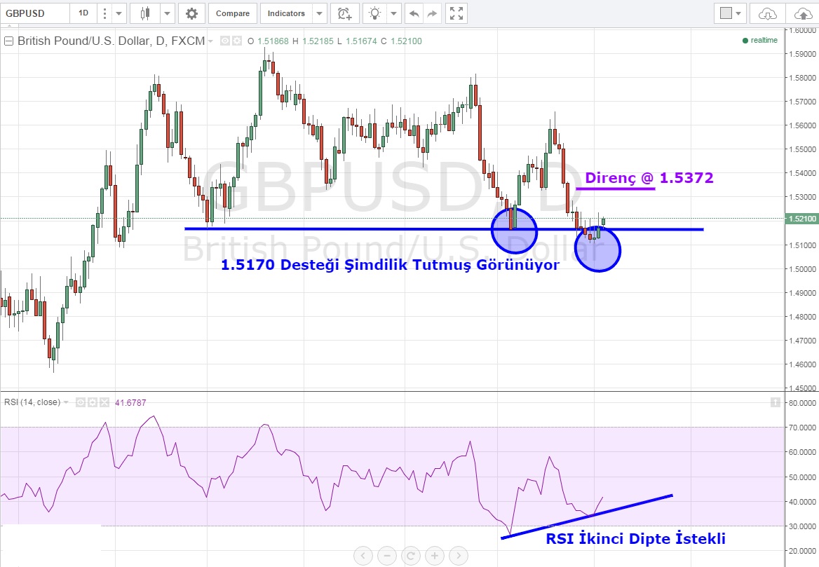 RSI 1.5170 ikinci kez test edildiğinde alıcıların daha istekli olduğunun sinyalini veriyor