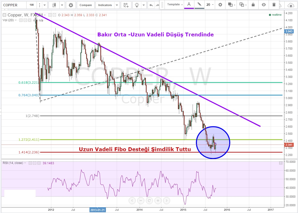 Uzun vadeli düşüş trendi içerisinde bulunan emtia , trendin fibo desteğinde şu an tutunmaya çalışıyor