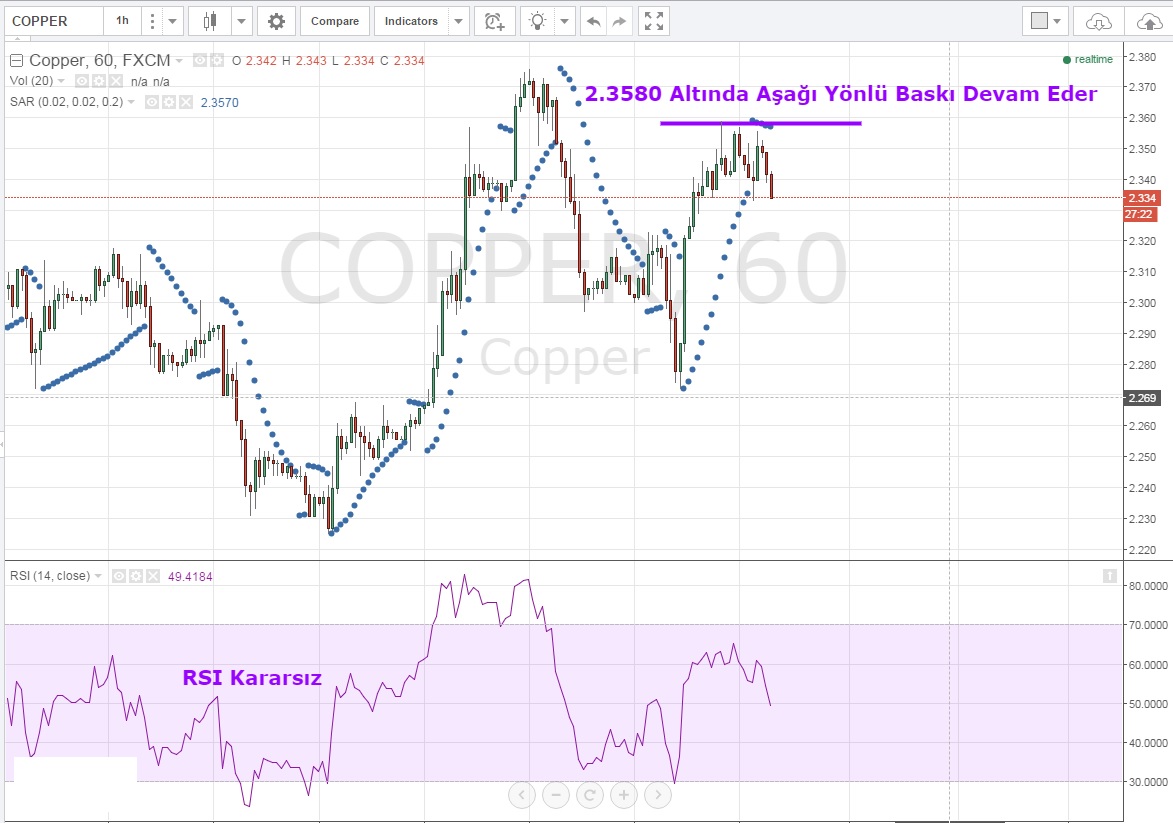 Buradan tepki alımları ile tutunmaya çalışan bakır için 2.22 seviyesinin tekrar kırılması ayıların etkin olarak yeniden devreye girdiğinin habercisi olacaktır
