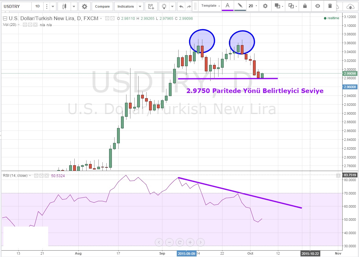 Günlük grafiklerde 3.06+ seviyelerinde oluşan çift tepenin ve ikinci tepede zayıflayan alıcı isteği öne çıkıyor .2.9750 seviyesi paritenin ayıları ile boğaları arasında sert bir savaş yaşanmasına neden olacak