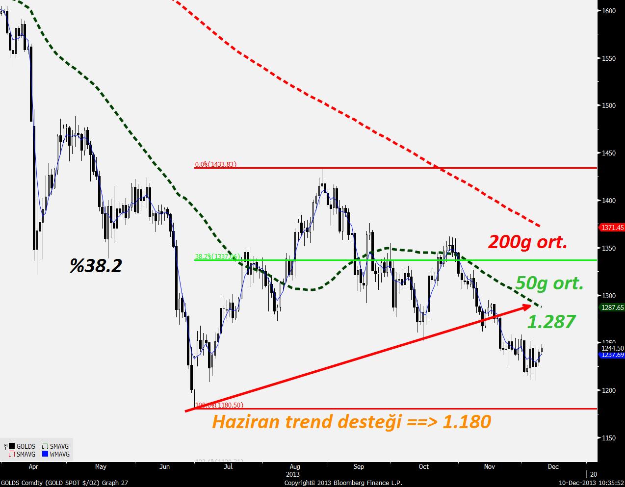 Grafikte ilk göze çarpan seviye 1.287'deki direnç. Tepki hareketinin devam etmesi halinde burada durması beklenebilir. Bense uzun süredir koruduğum kötümser tavrı südürmeye devam ediyorum. İlerleyen yazılarda reel faizler ve altın ilişkisine yeniden değineceğim ancak yazıyı kısa tutmak adına sadece teknik seviyeleri vermeye çalışıyorum. 1.210'un kırılması ise Haziran'da gördüğümüz 1.180'i hemen gündeme getirecektir.