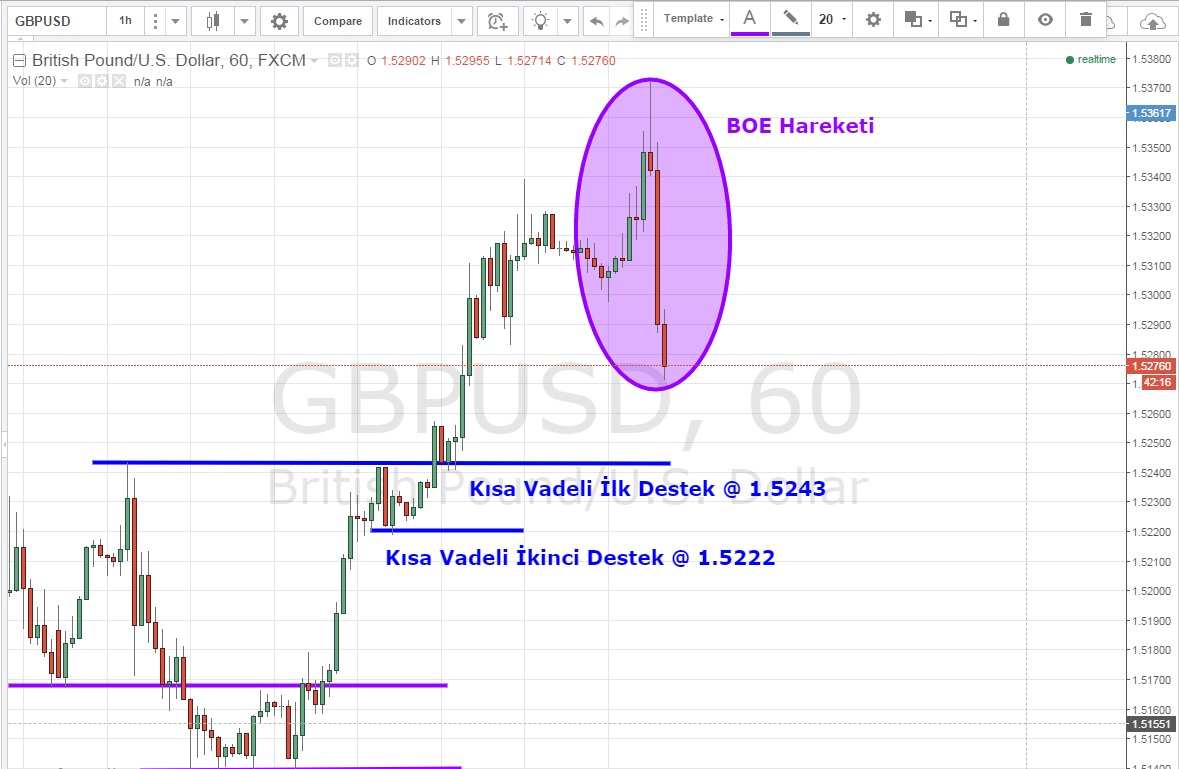 BOE ile birlikte sert satış yiyerek an itibari ile 1.5276 'dan fiyatlanan Cable 'ı önümüzdeki dönem için bir süre izlemeye alıyoruz