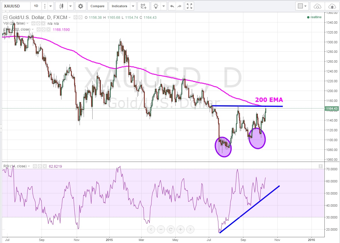 Günlük grafiklerde 200 EMA direncine dayanan ve burayı geçmesi durumunda 1170 USD seviyesini takip edeceğimiz XAUUSD 'de çift dip tamamlanırsa yükselişin devamı beklenebilir