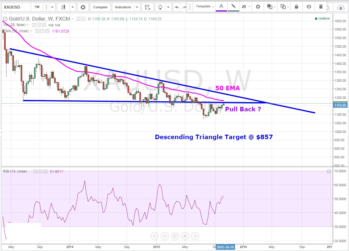 Haftalık grafiklere geldiğimizde ise düşüş trendi korunuyor .Alçalan üçgen tabanına doğru bir Pull -back yapıyor görüntüsü veren XAUUSD için 50 EMA direnci yukarı yönlü hareketi yavaşlatabilir .