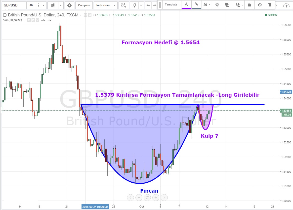 Kısa vadeli grafiklerde Fincan -Kulp olusturmaya çalışan parite 1.5379 'u yukarı yönlü kırarsa formasyon tamamlanacak ve 1.5654 hedefe girecek
