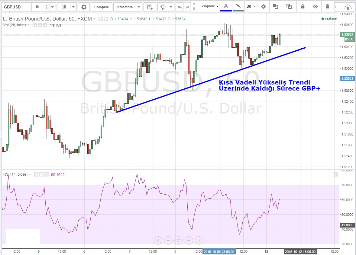 Saatlik grafiklerde ise oluşan kısa vadeli yükseliş trendi Cable 'a destek olmaya devam ediyor