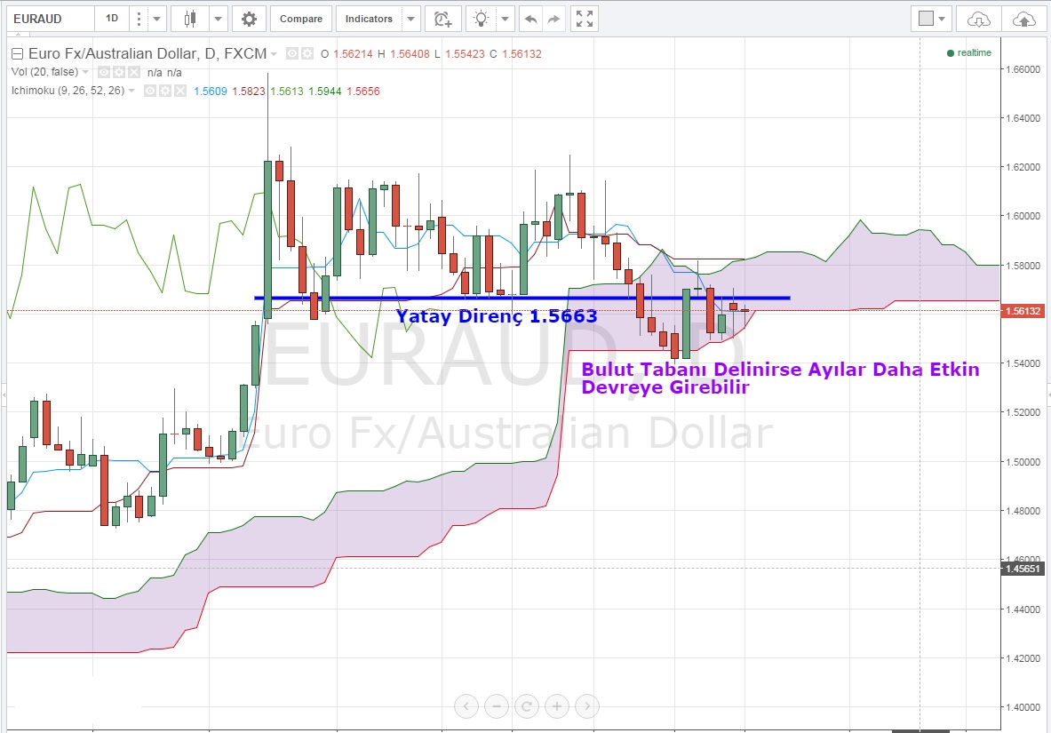 EURAUD gibi volatil ve trade etmesi zor bir parite için teminat risk seviyelerini kontrol ederek 1.5636 altında kaldığı sürece 1.5499 hedefli kısa pozisyonlar açılabilir .