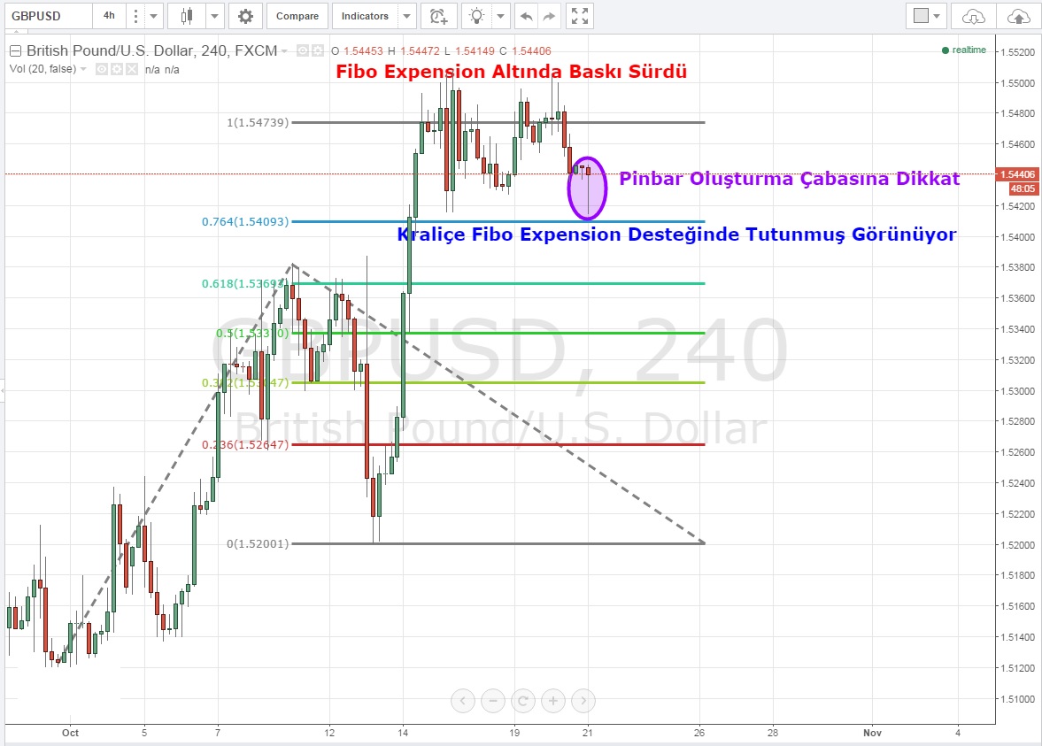 İlk hedef olarak konuştuğumuz 1.5409 seviyesine yaklaşılsa da gün içerisinde en düşük 1.5415 'i test ederek pinbar oluşturmaya çalışan Kraliçe için kısa pozisyonda olanlar