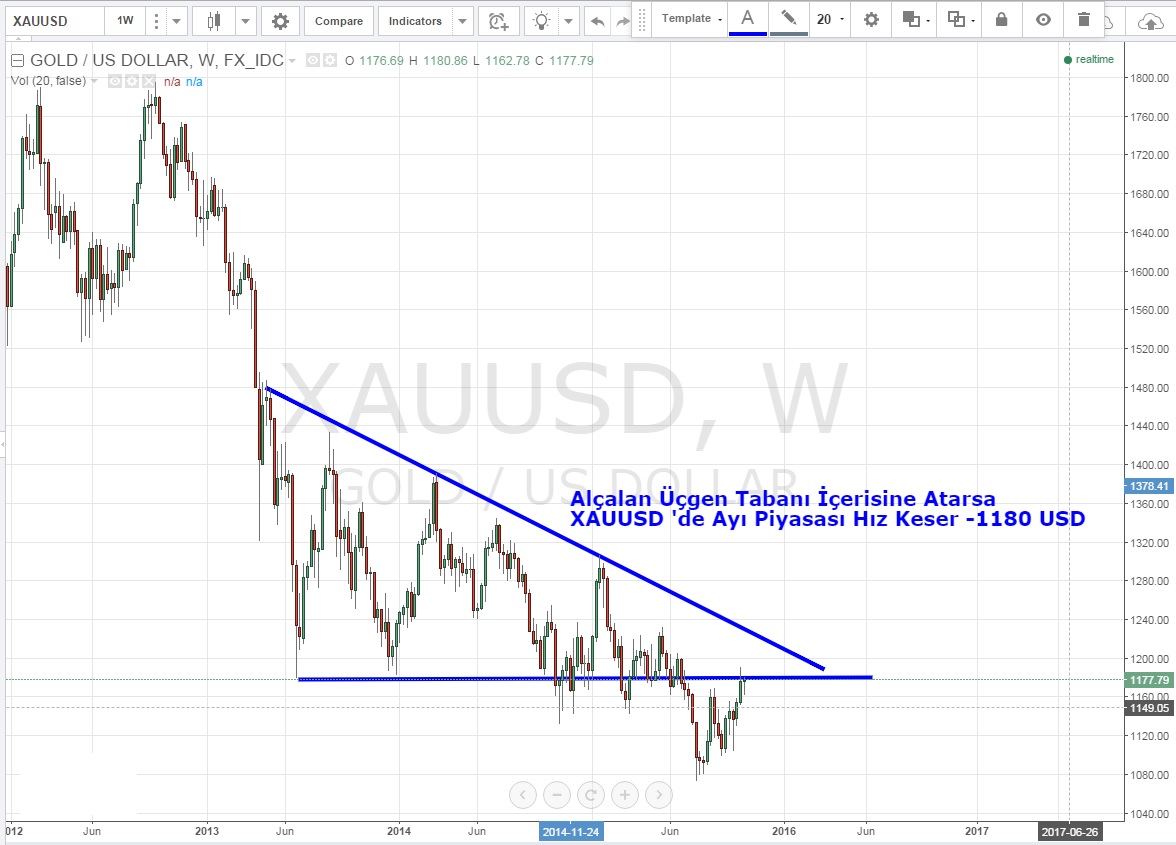 Haftalık grafiklerde 1180 USD üzeri kapanışlar olduğu sürece sarı metalde ayı piyasasının gücü zayıflaması veya en azından ivmesinin azalmasını beklerim