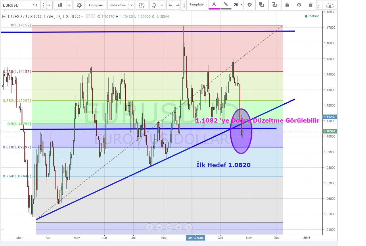 Dün gece Euro boğalarının hamlesi ile yükseliş gösteren ve an itibari ile 1.1033 seviyesine kadar yükselen parite için 1.1082 seviyesinin Fibo düzeltme seviyesi olarak öne çıktığı dikkat çekiyor .