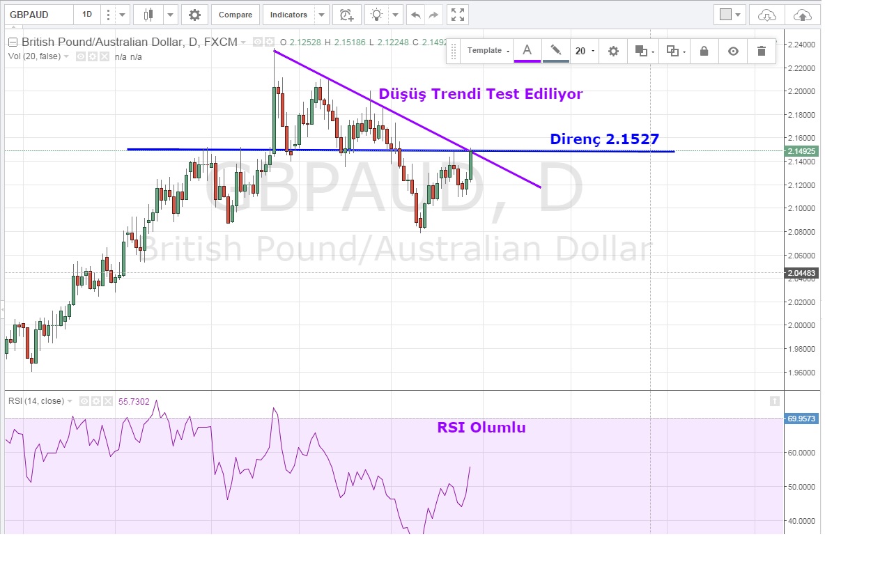 Gece saatlerinde 2.1250 seviyelerinde seyreden parite TSİ 3:30 'da Avustralya 'dan gelen 3. Çeyrek TÜFe verisinin beklenti altında kalması ile (%0.5 vs % 0.6 ) 2.15 trend direncine doğru sert bir hareket gerçekleştirdi .