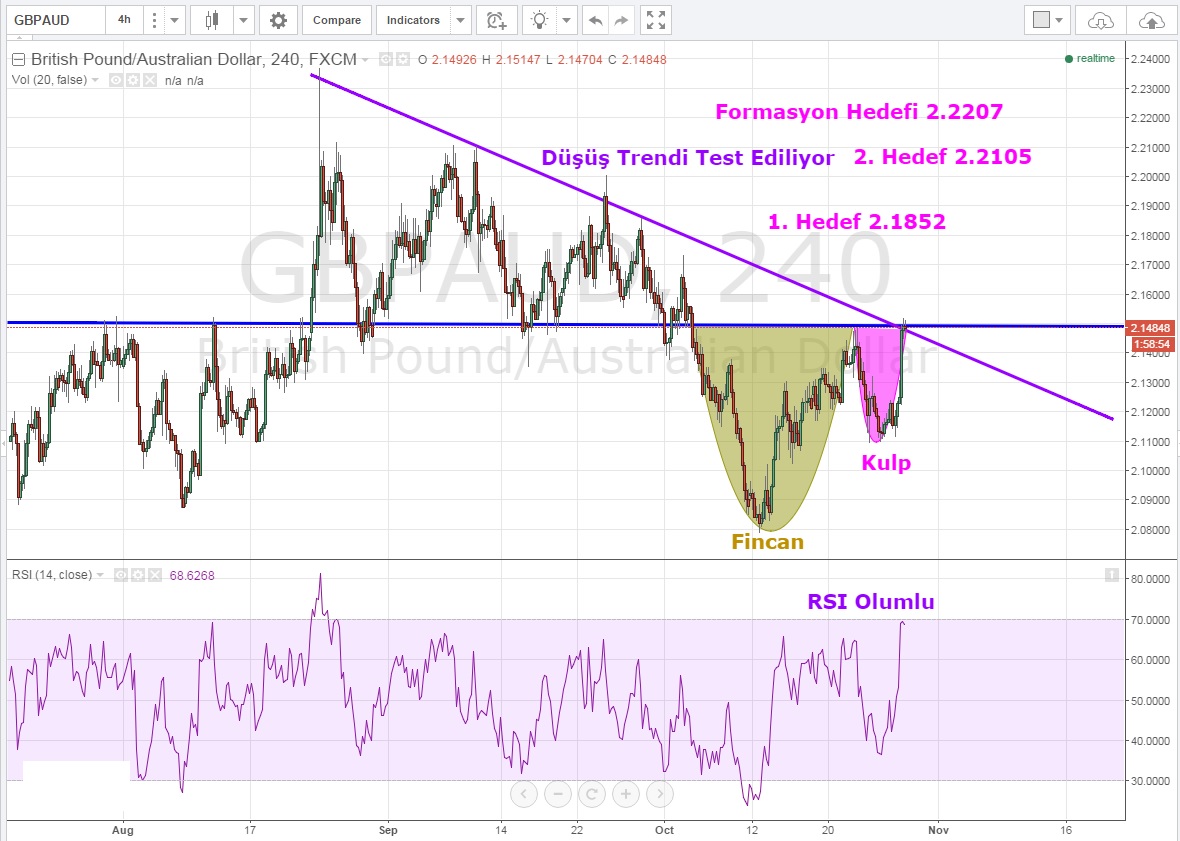 Fincan kulp oluşturmaya çalışan paritenin 2.1527 direncini aşması durumunda sırasıyla