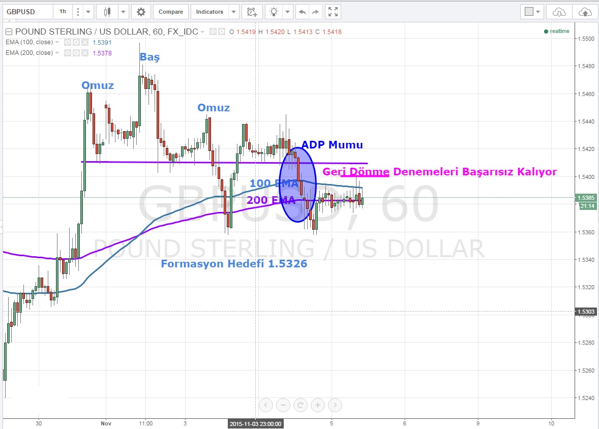 Kısa vadede 1.54 etrafında kapanış yapamayan mumların boyunun kısa kalması ayıların hala güçlü olduğunun sinyali olarak değerlendirilebilir .