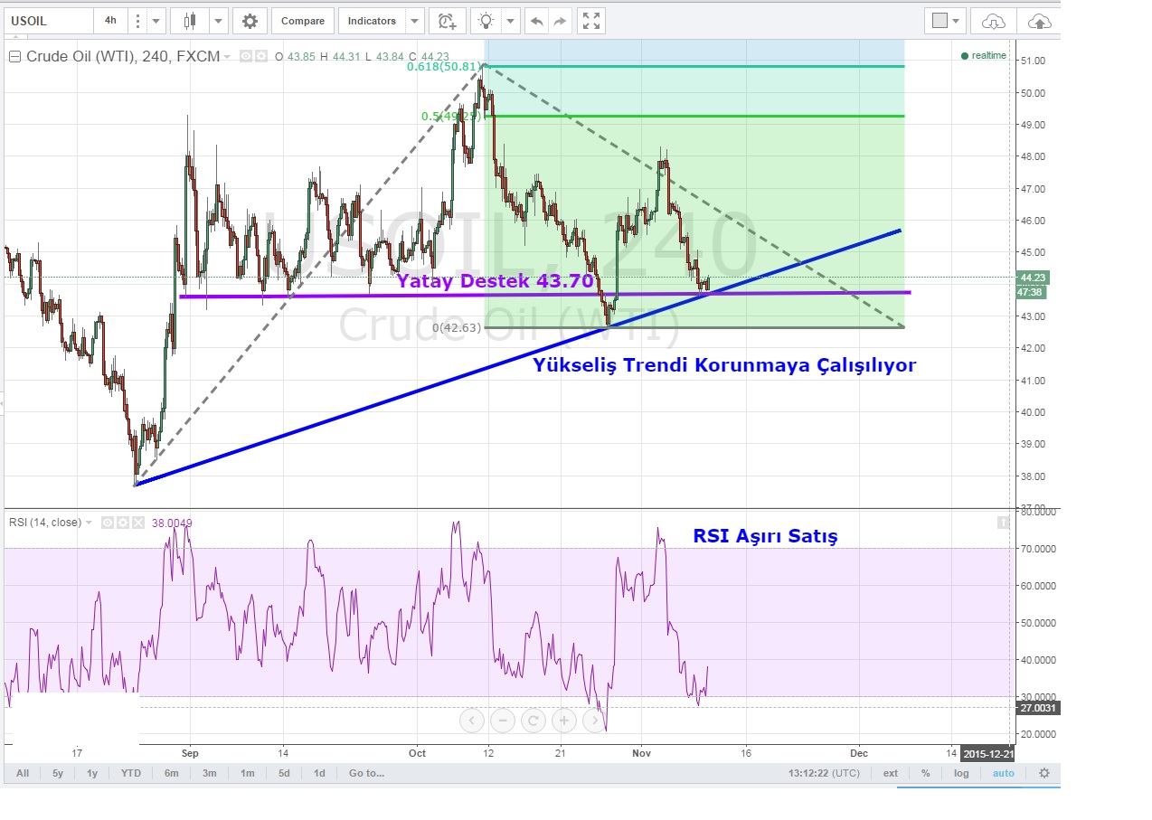 Kısa vadede trend ile birlikte 43.70 yatay desteğini de arkasına almaya çalışan emtia için bu seviye üzerinde kaldığı sürece hedefler sırası ile