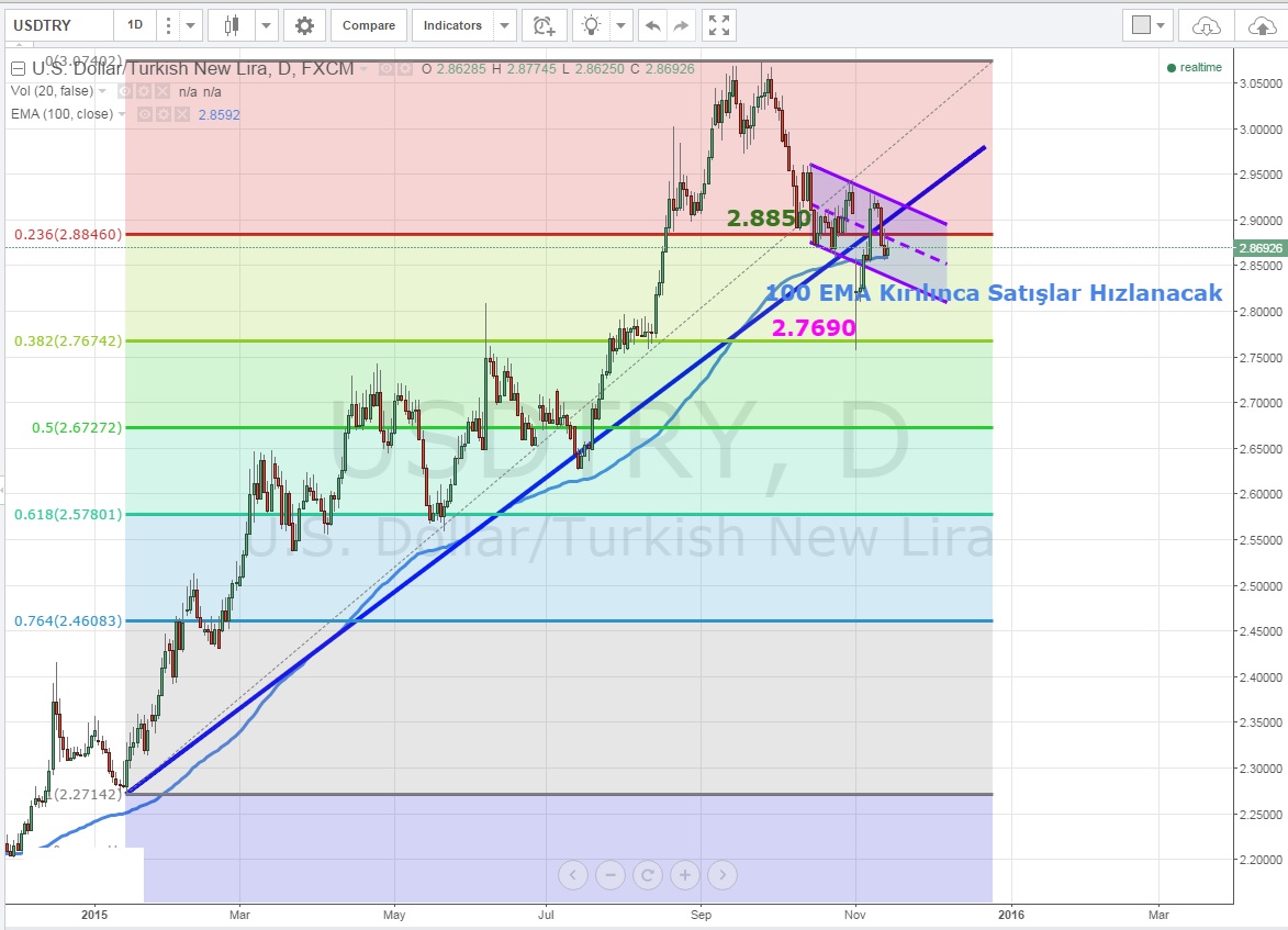 Kısa vadeli düşüş trendi oluşturan paritenin 2.8790 altında kaldığı sürece kısa pozisyon alınmaya devam edilebilir