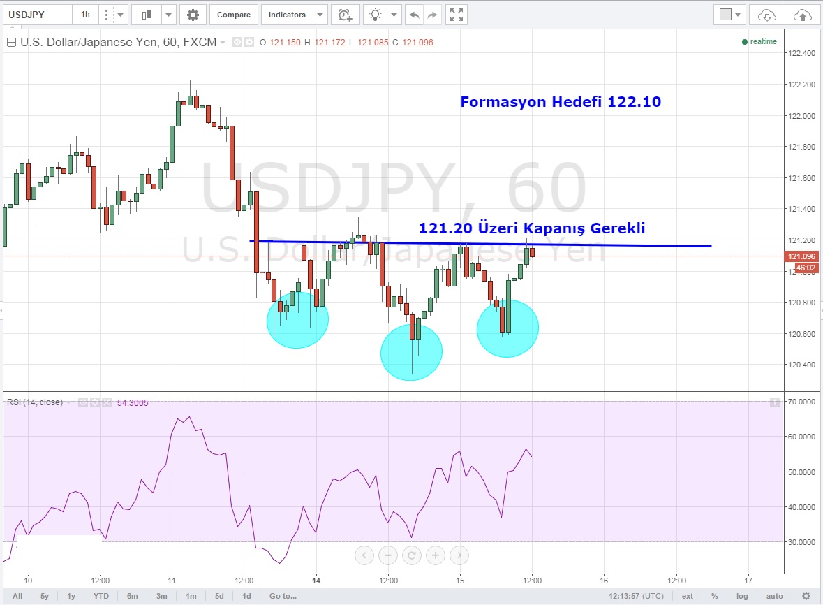 Saatlik grafiklerde ise TOBO oluşturmaya başladığı ve 121.20 üzeri kapanışlarda 122.10 kısa vadeli formasyon hedefine ulaşacağını düşünüyorum