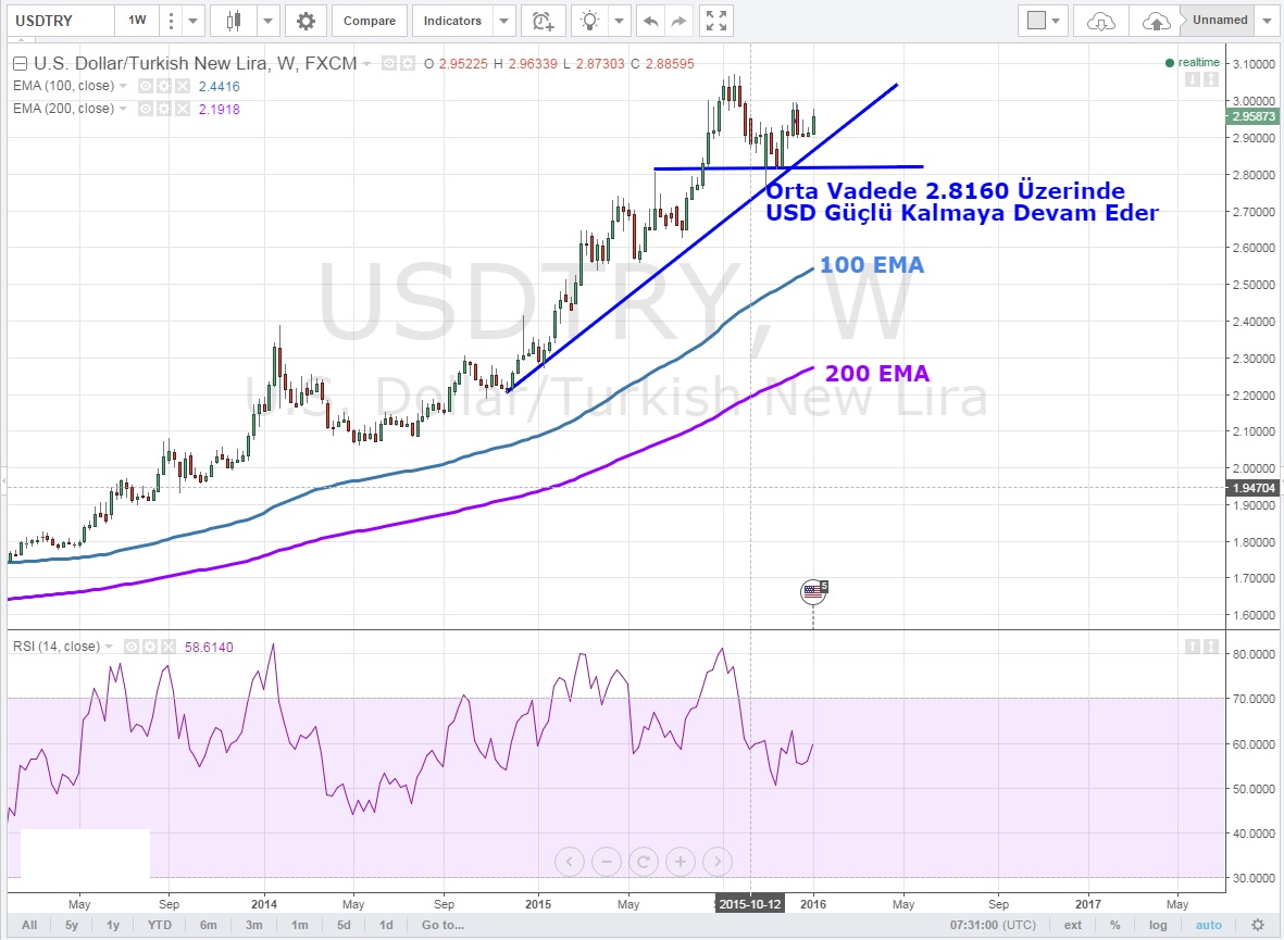 2.8160 desteği üzerinde paritenin hala gidecek yolu olduğunu görüyoruz .Bu seviye altına inilmeden USDTRY 'de orta uzun vadeli stratejiler düşüşleri alım fırsatı olarak değerlendirmek olmalı