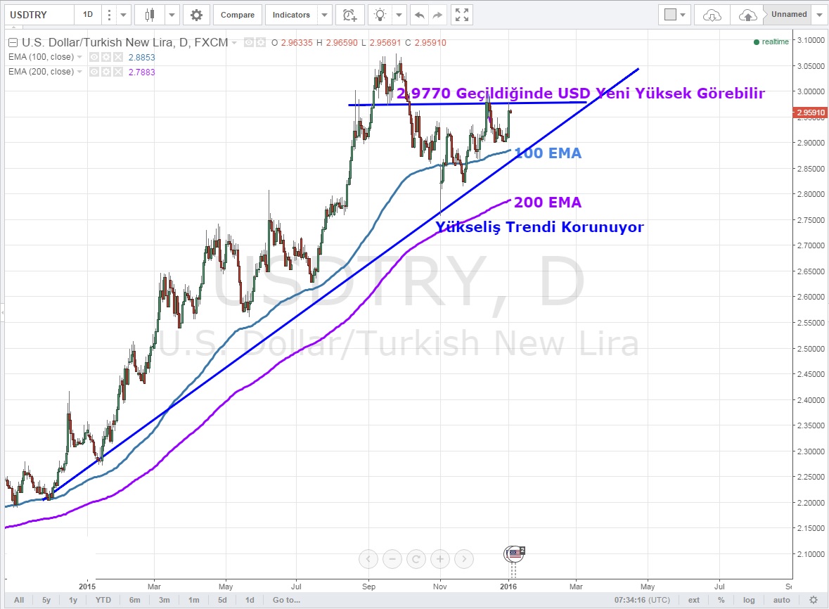 USDTRY 'de haftalık ve günlük grafiklerde ki yükseliş trendleri boğaların gücüne ve piyasada ki alım isteğine işaret etmekte