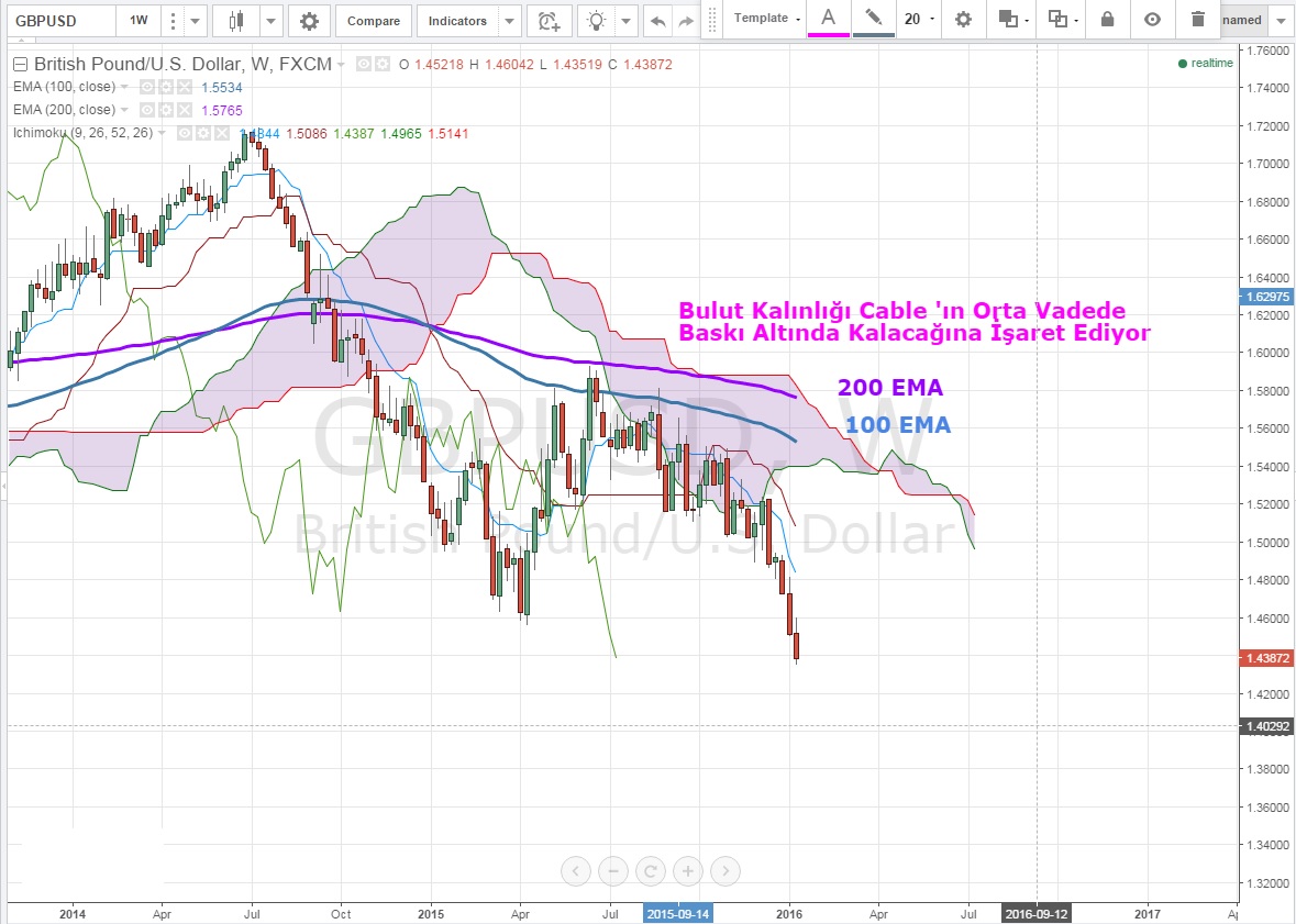 Haftalık grafiklerde Ichi Moku Bulutu altında seyreden paritenin bulut kalınlığını dikkate aldığımızda orta vadede baskı altında kalacağını görüyoruz